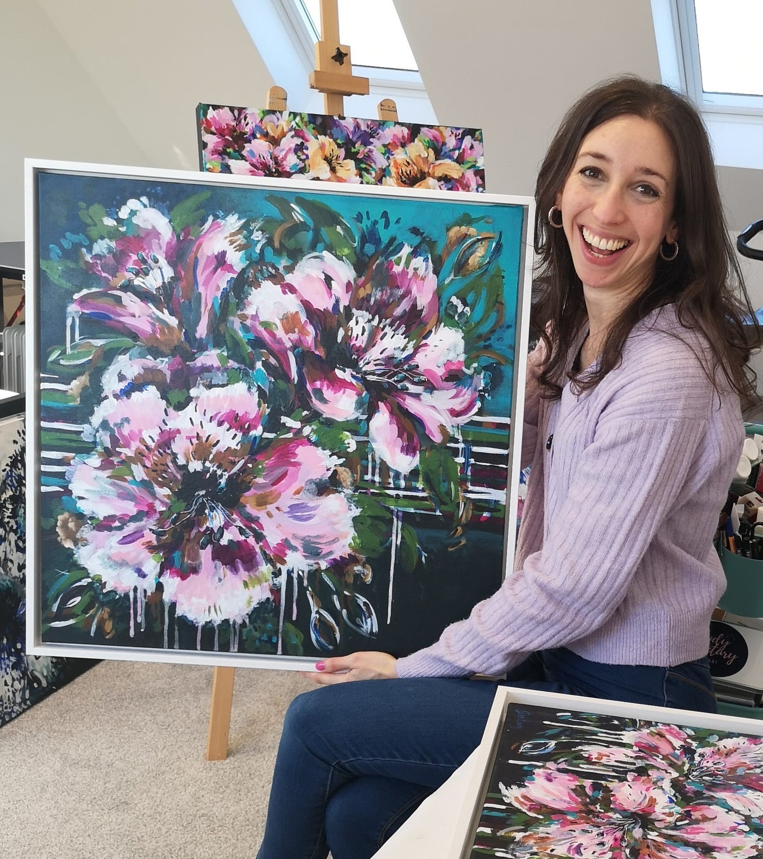 I'm a North London-based artist who paints expressive floral and landscape paintings in acrylics. I'm drawn to structure and patterns in nature, and enjoy capturing the drama and energy of flowers blooming, sweeping cloud formations and beautiful sunsets.