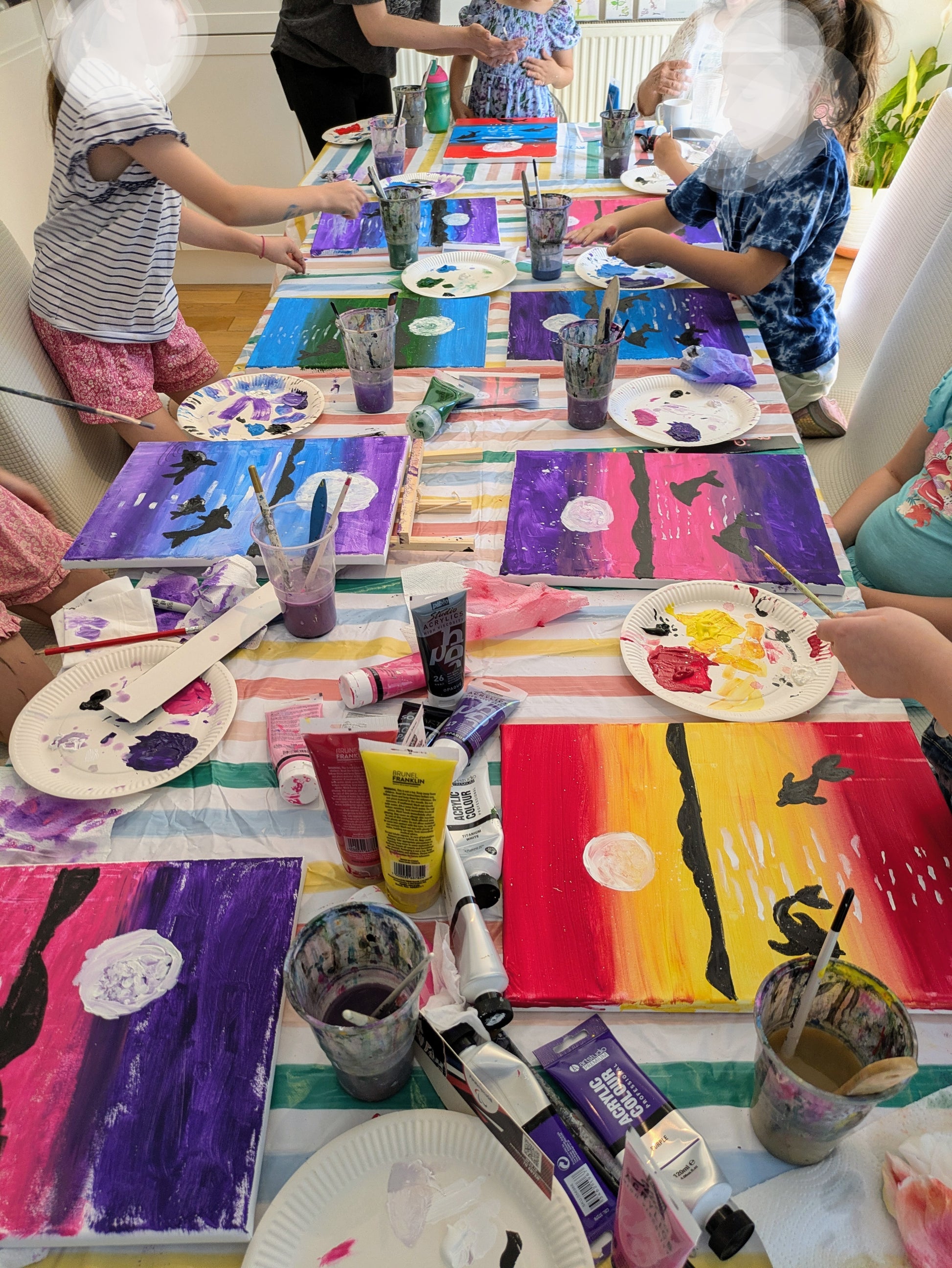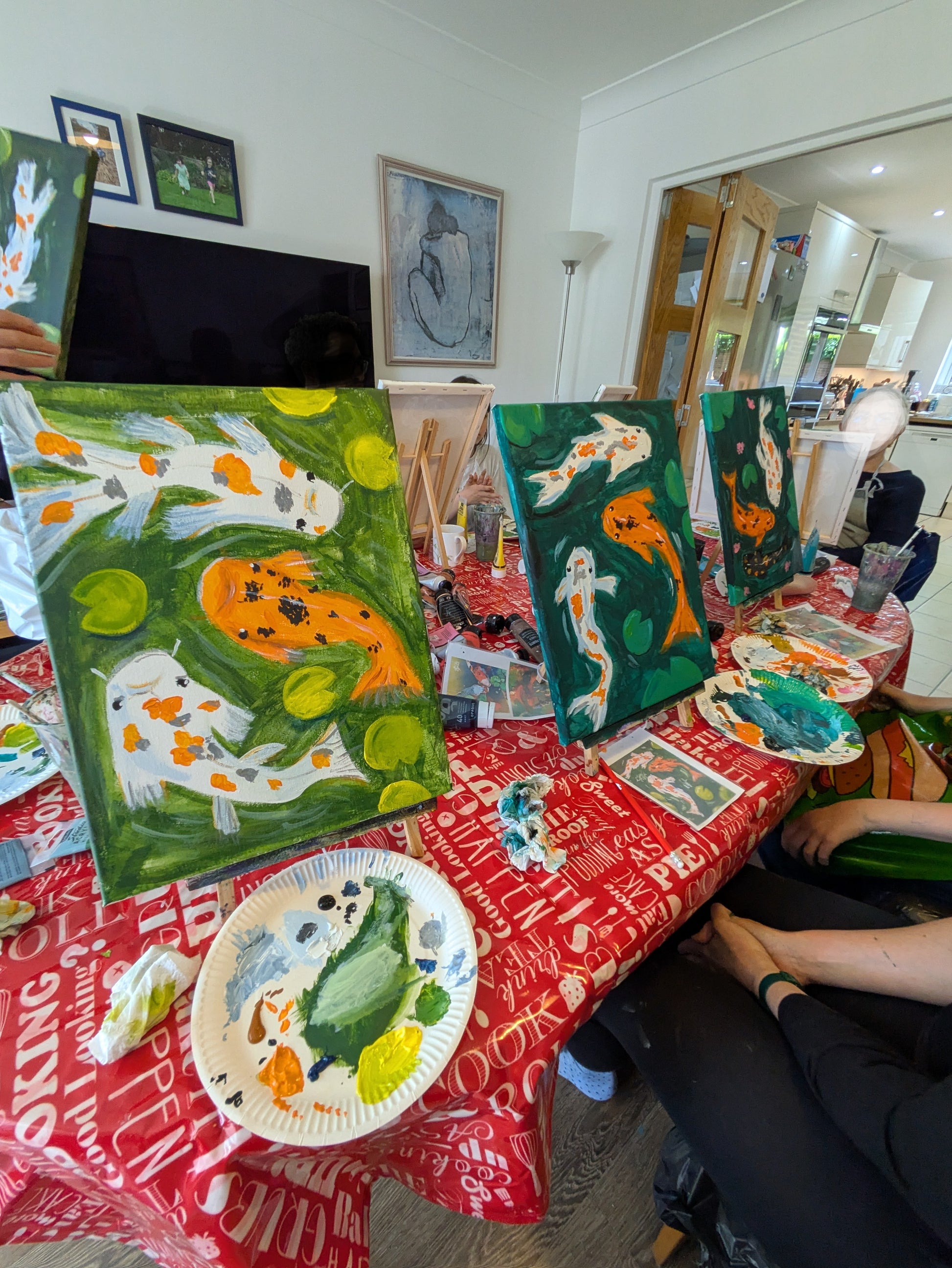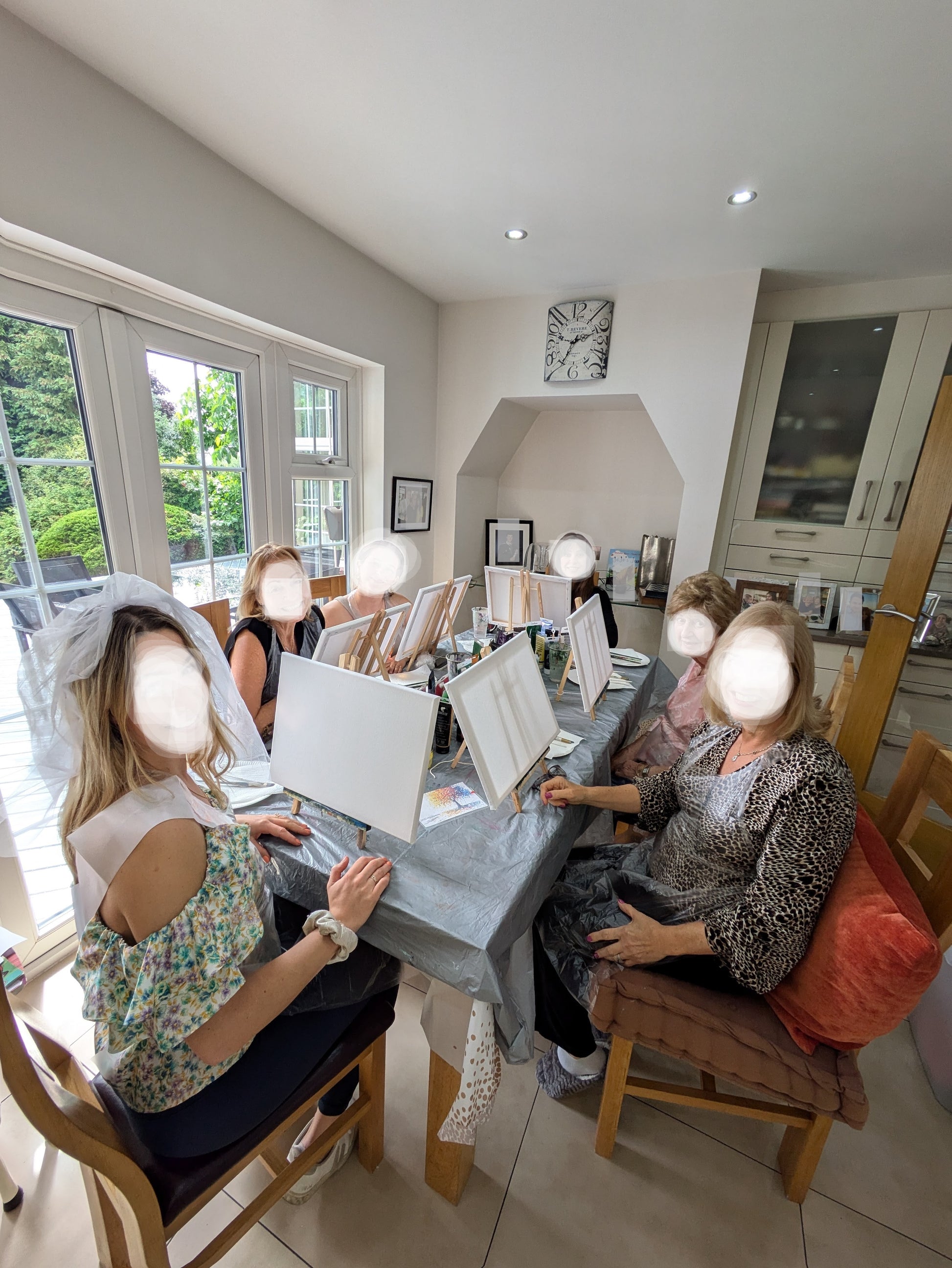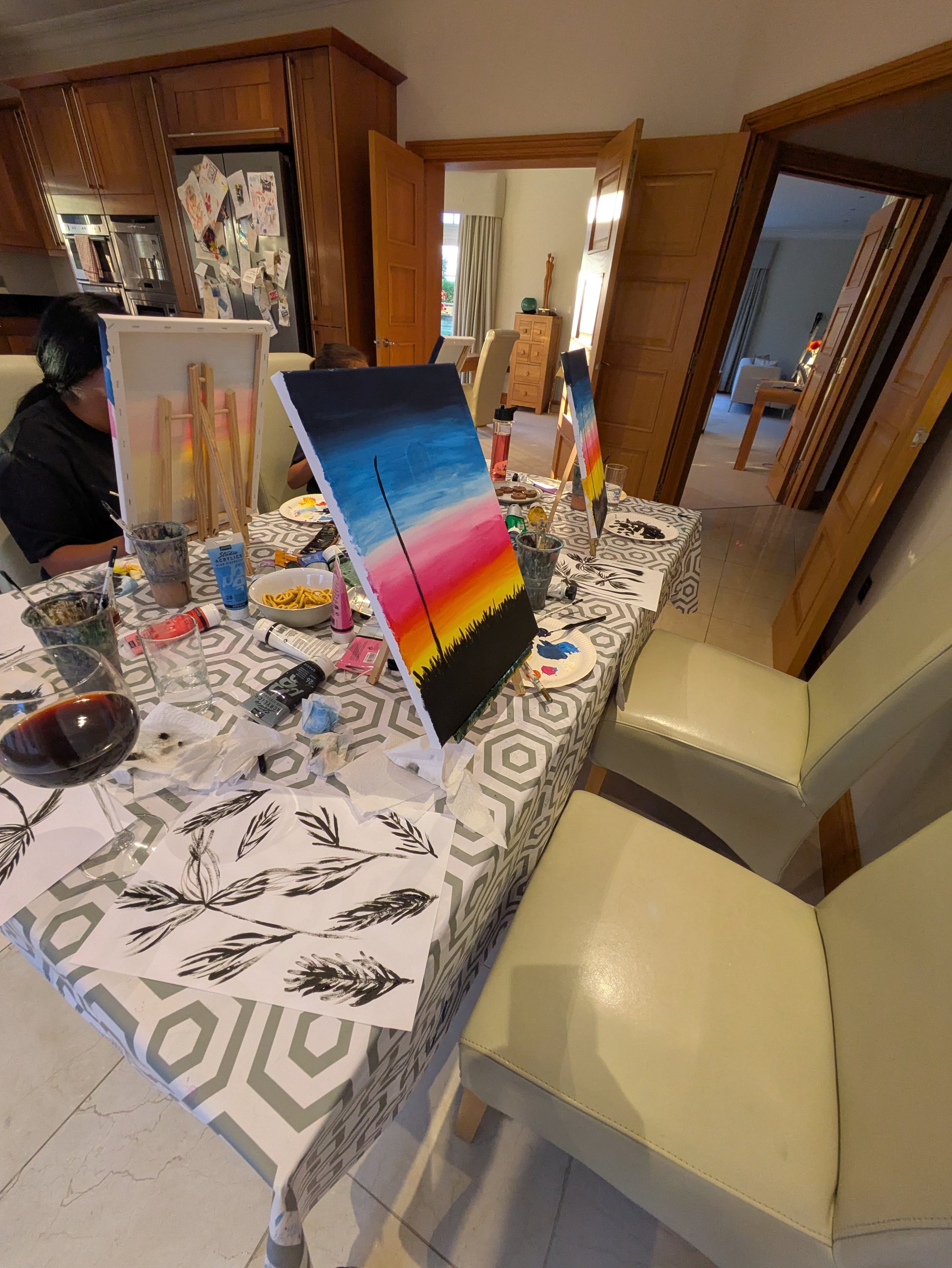 Host your own painting party and make an event of it! I will bring the painting workshop to you, (which includes all the materials, equipment and ideas), and will guide your group to create an exciting canvas painting in your own space. Perfect for birthday celebrations, team building, hen parties, or just for fun with friends. Let your creativity flow and make something special that you'll remember for a long time. Plus, it's a great way to get together with friends or colleagues and have a laugh!