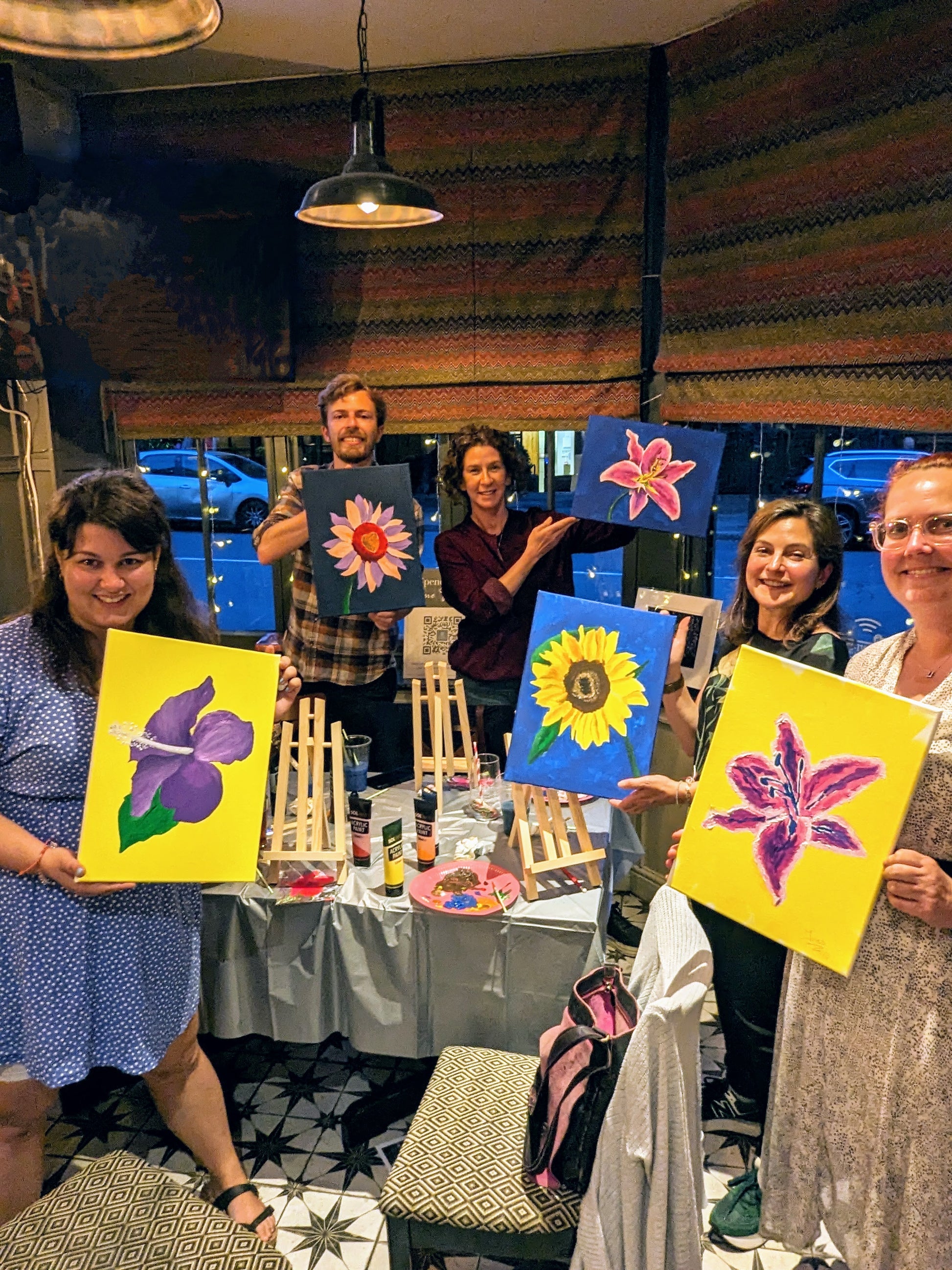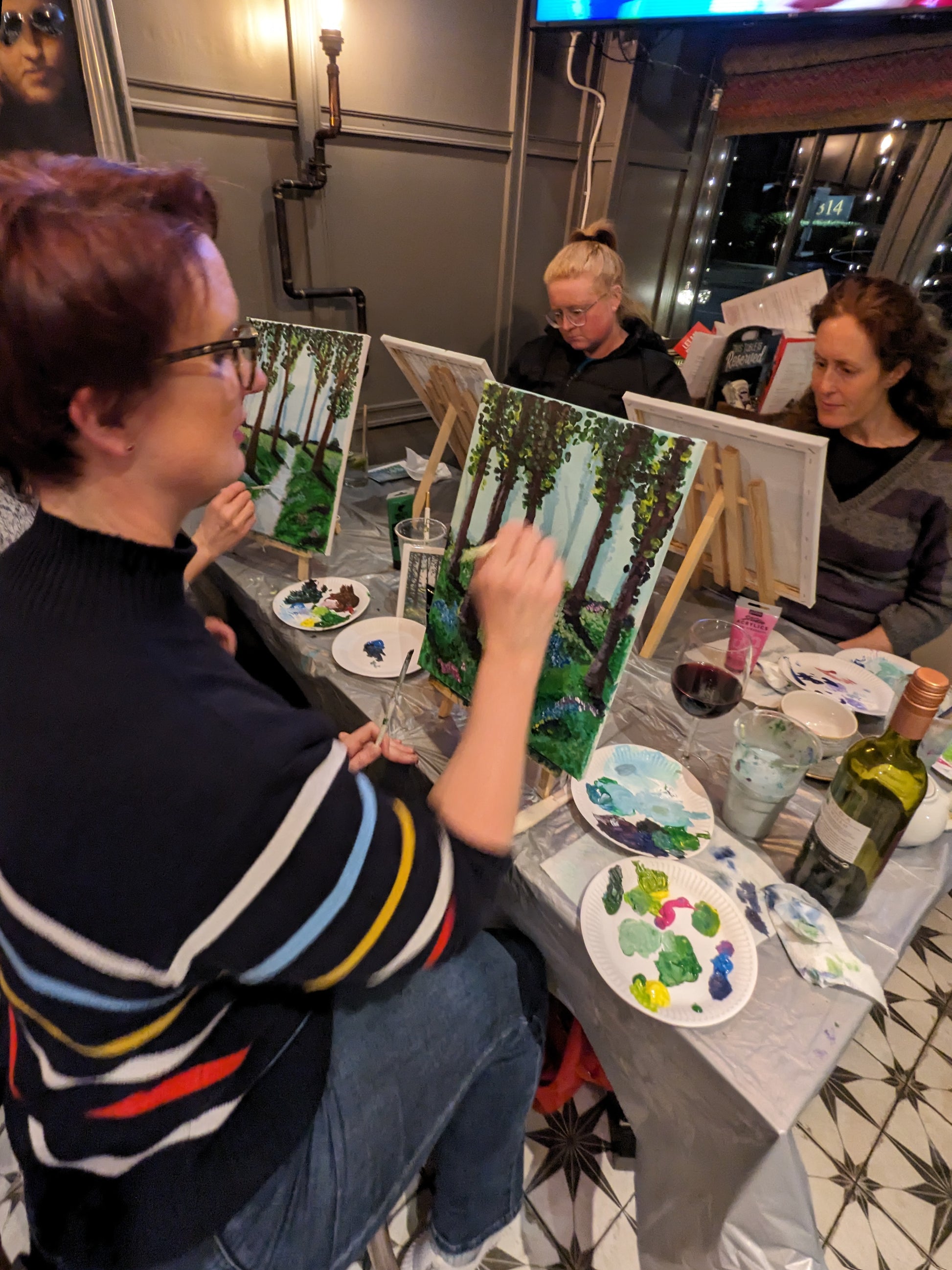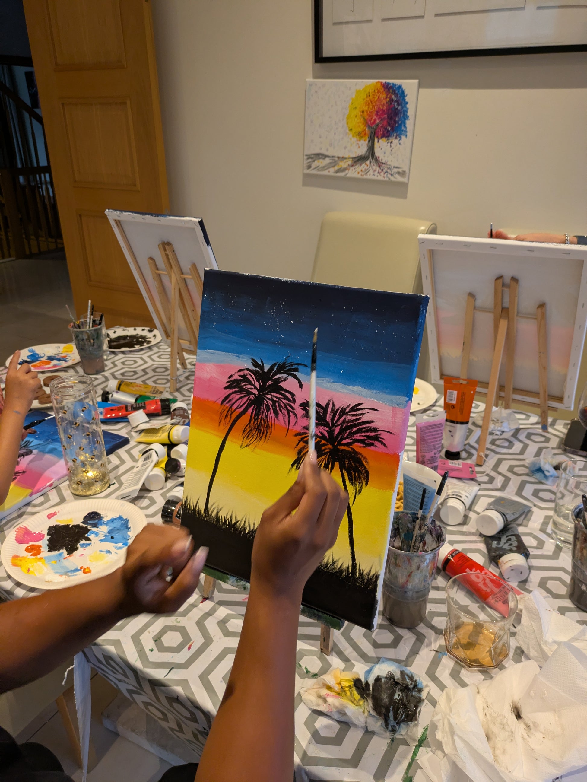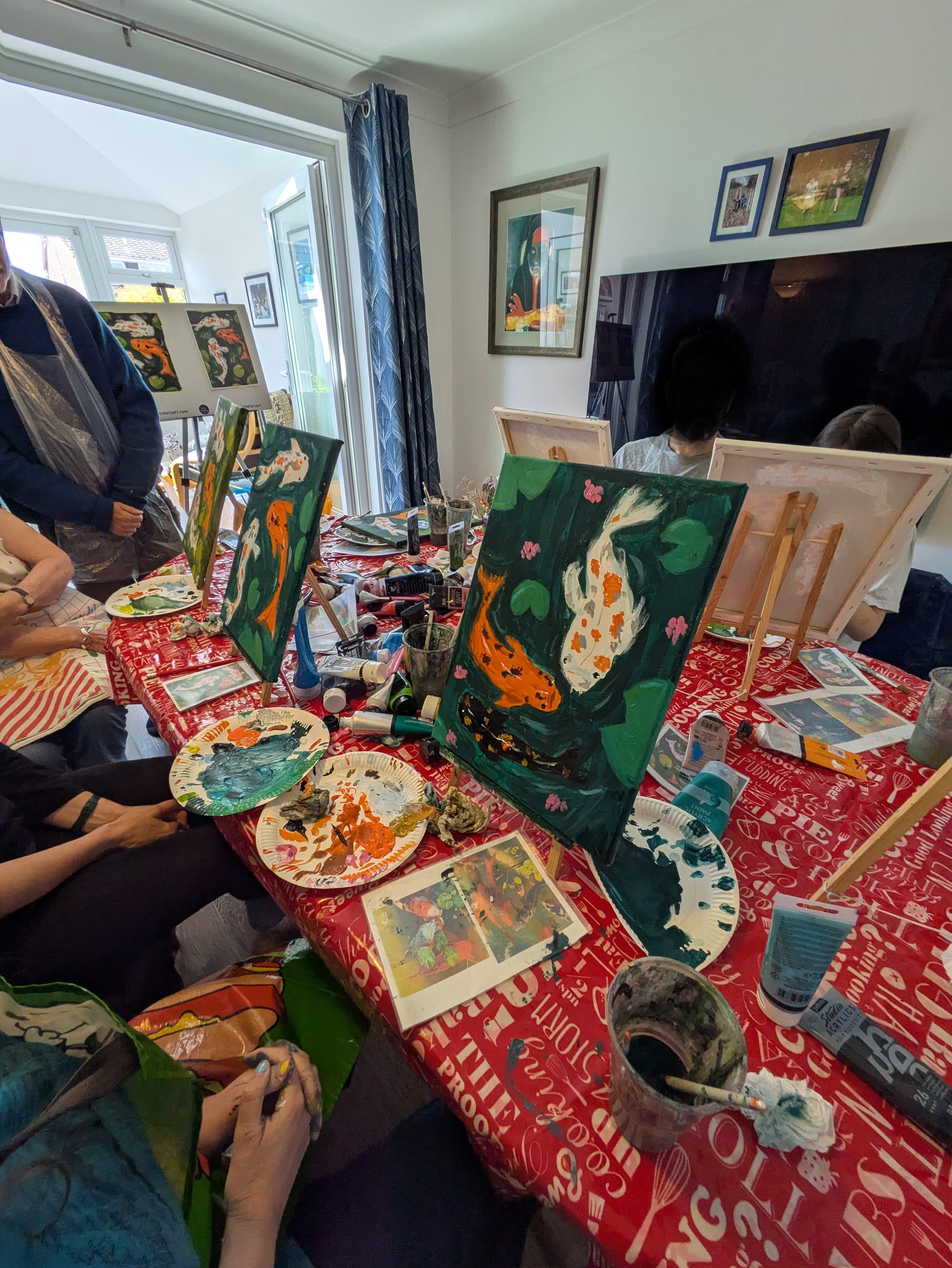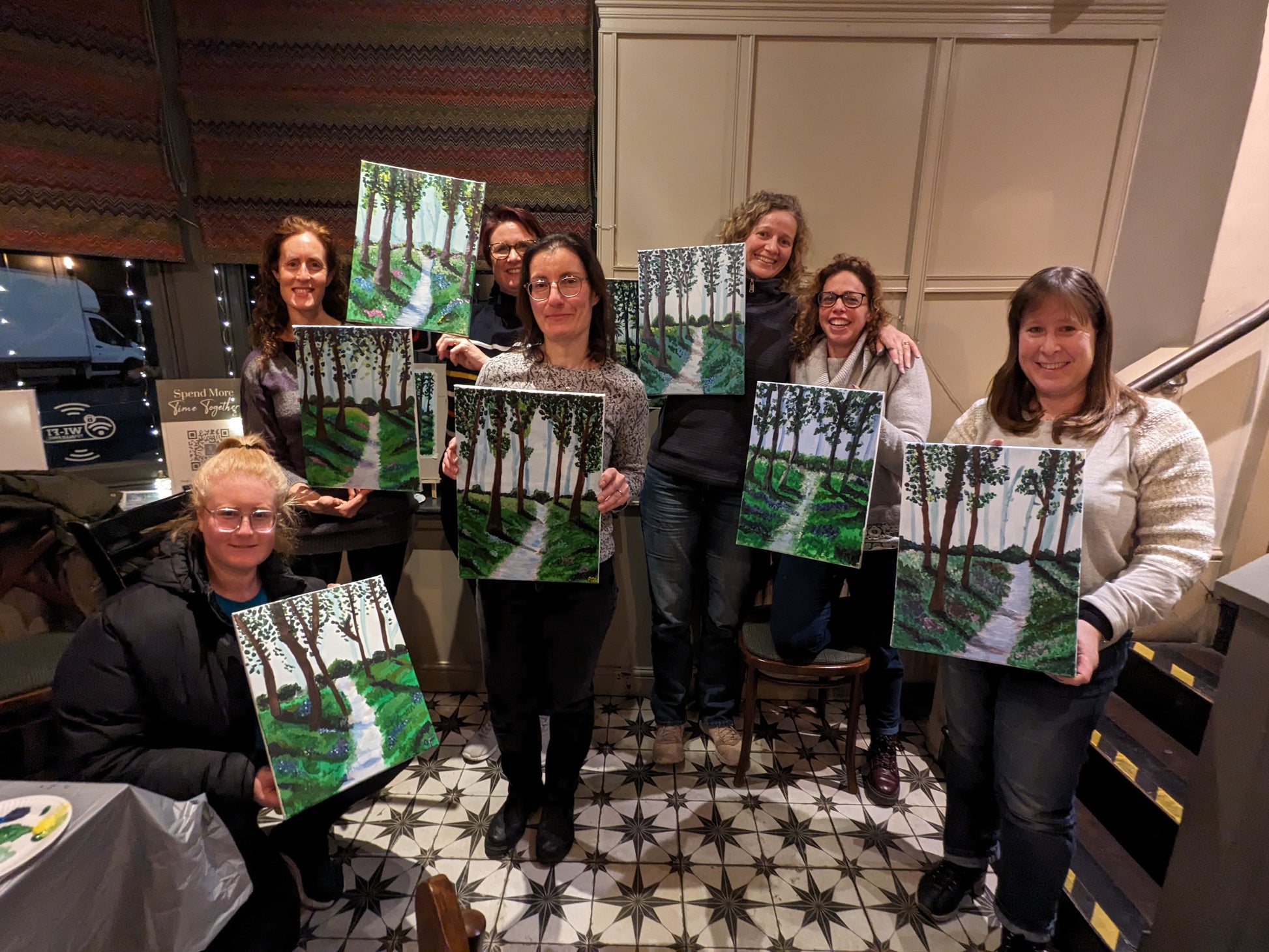 Host your own painting party and make an event of it! I will bring the painting workshop to you, (which includes all the materials, equipment and ideas), and will guide your group to create an exciting canvas painting in your own space. Perfect for birthday celebrations, team building, hen parties, or just for fun with friends. Let your creativity flow and make something special that you'll remember for a long time. Plus, it's a great way to get together with friends or colleagues and have a laugh!
