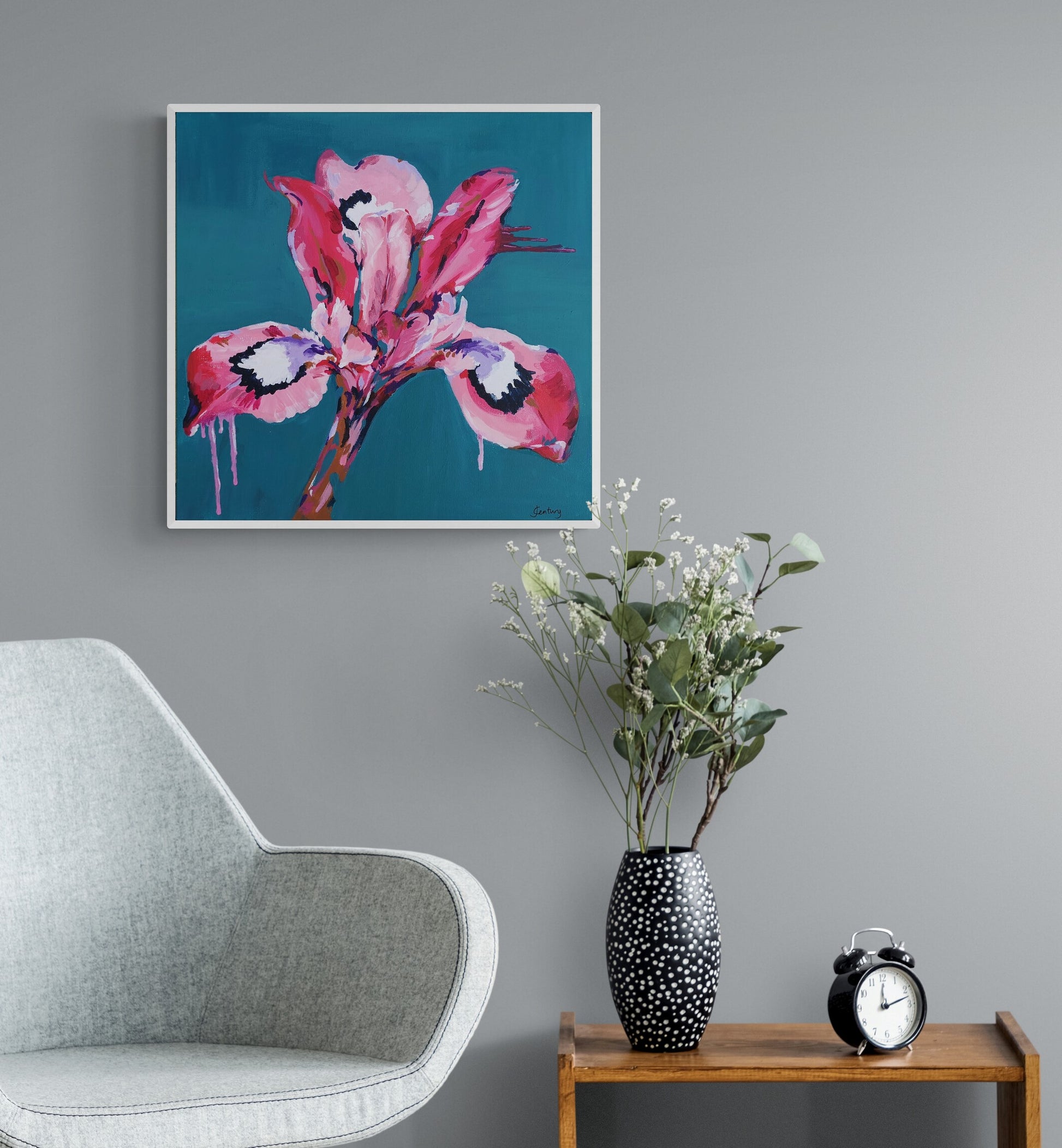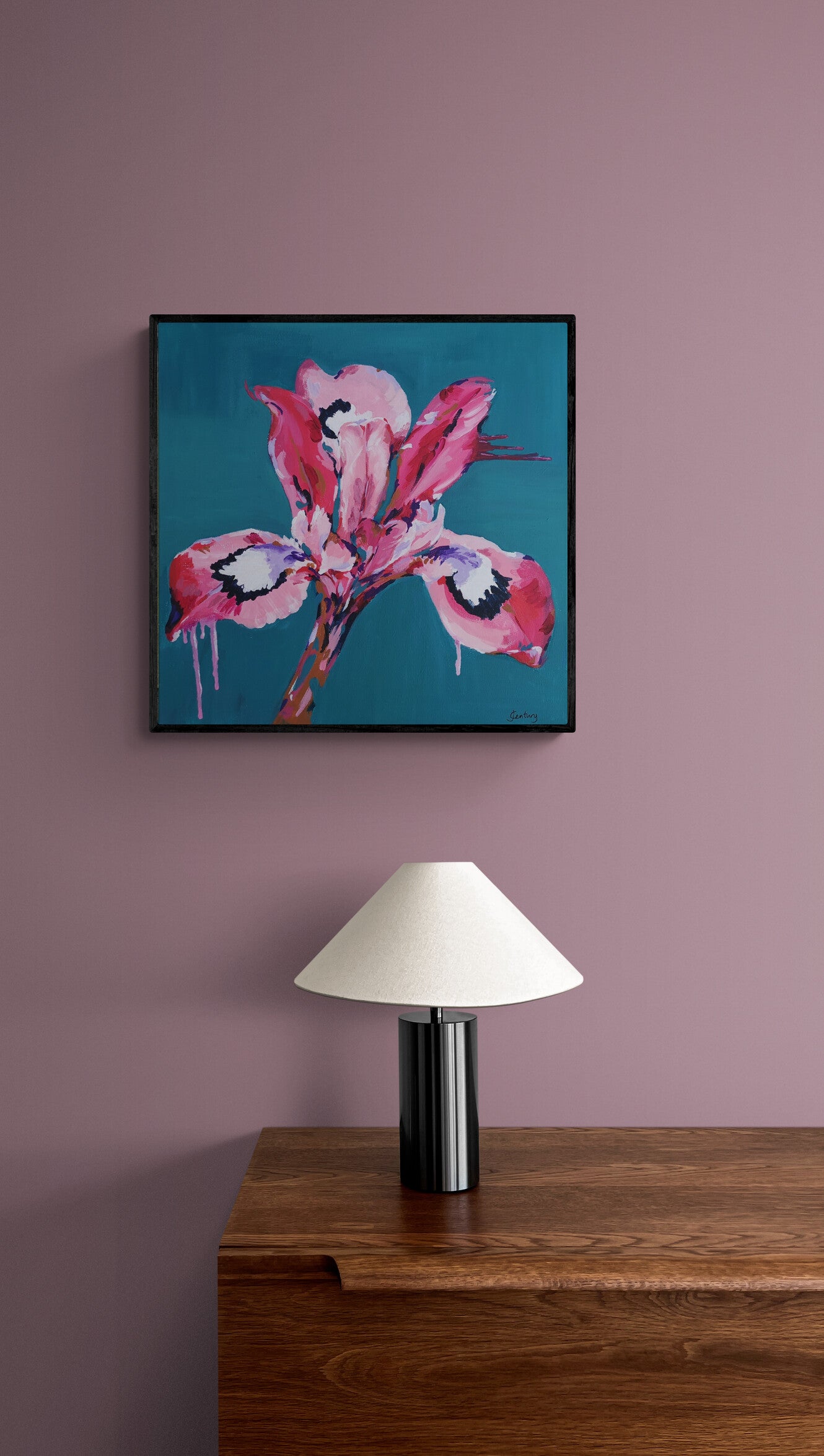 Contemporary, pop-art inspired original Iris painting. I enjoyed mixing up the colours and creating a striking, modern interpretation of the stunning Iris flower, with its floating petals and iconic shape.